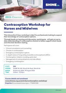 SHINE SA Contraception Workshop for Nurses Flyer 2026